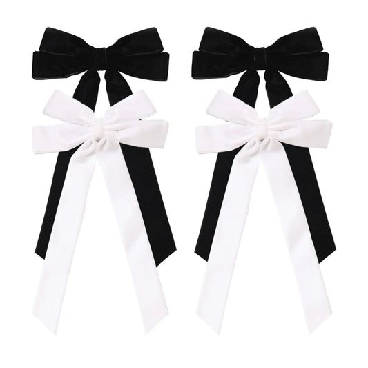 Furling Pompoms Velvet Hair Bows for Women Large Hair Bow Clips French Bow Hair Clips Hair Ribbons Bowknot Ribbon Hair Barrettes Vintage Hair Accessories for Girls (White Black)