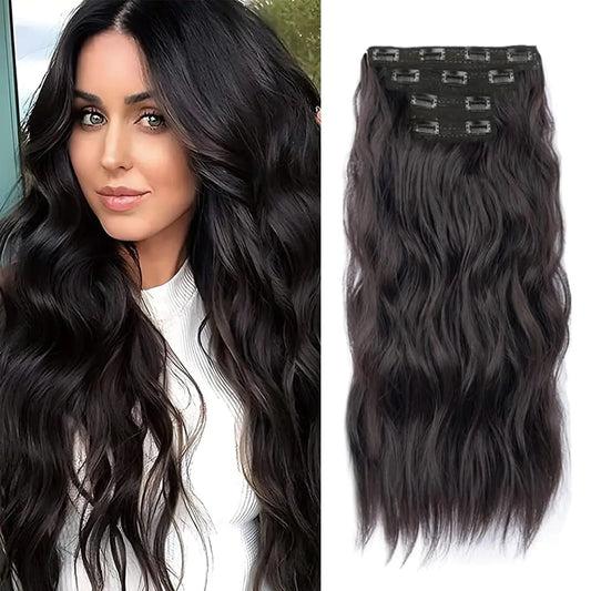 20 Inch Clip in Hair Extensions 4Pcs Hair Extensions Clip Ins Dark Brown Double Weft Hair Extension Long Wavy Synthetic Hair Extensions for Women 20 Inches