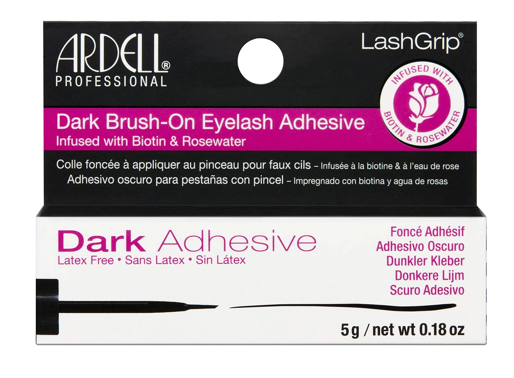 Ardell Brush-On Eyelash Adhesive - Latex-Free Lash Glue with Biotin & Rosewater for Long-Lasting Hold Easy Application for False Lashes and Lash Clusters - Dark