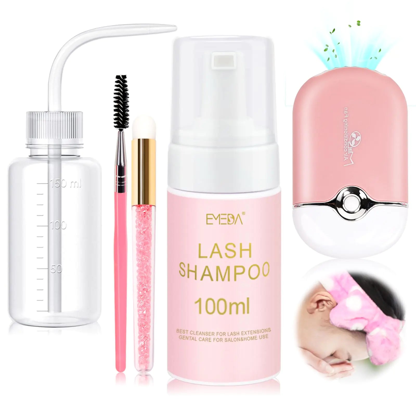EMEDA Lash Shampoo for Extensions Cleaning Bath Kit for Cluster Lashes Fan Brush Wash Bottle Hair Band Oil Free Foam Soap Cleaner Eyelash Cleanser