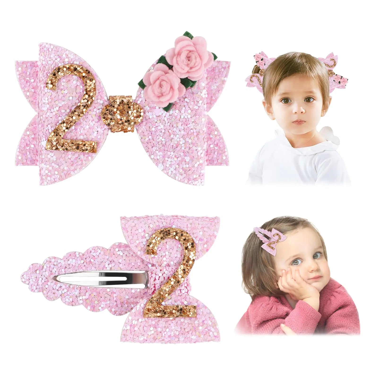 Hair Clips for Baby Girls Hair Bows - 2nd Birthday Baby Hair Clips Pink Bow Glitter Baby Bows Toddler Hair Accessories Pink Bows for Hair